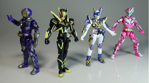 装動ゼロワンシリーズも第三弾。 中間フォーム、ライバルライダーがラインナップされています。 相変わらず再現度は高いのですが、今回は気合を入れてシールを貼る必要があります。